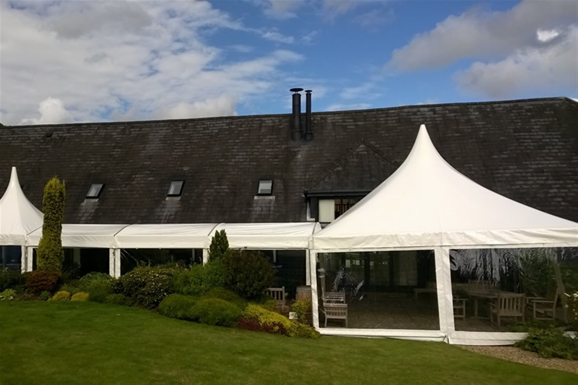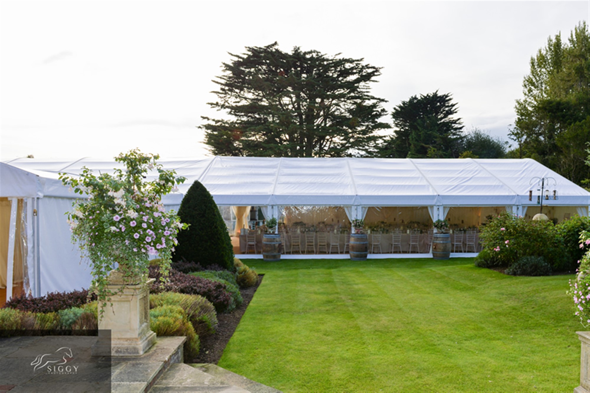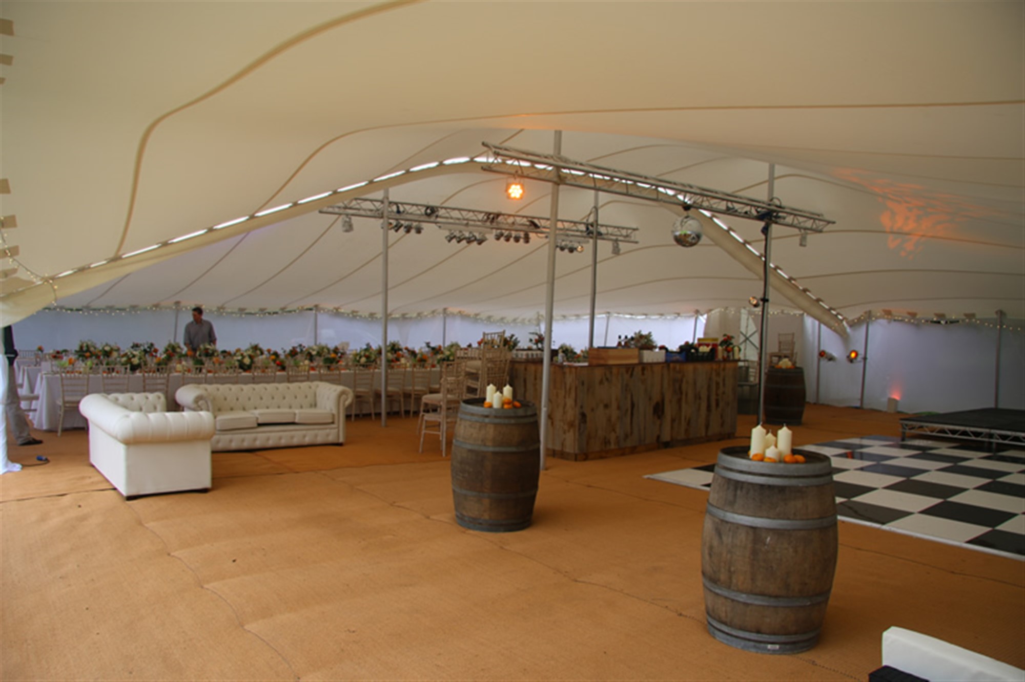 Our marquees are modern, high quality clear-span frame marquees. They can be installed in almost all locations and can be built large enough to accommodate you and your guests comfortably in Spring, Summer, Autumn or Winter. They are PVC clad on aluminium frames, designed to maximise the use of available space. The marquee frames are modular, come in varying widths and lengths so the size can be tailored to create a truly bespoke personalised space. Frame marquees have no centre poles inside the marquee and can be erected on most surfaces (not just grass). They can be adjoined to buildings and as there are no guy ropes, require less room at the site. They can withstand poor weather conditions.